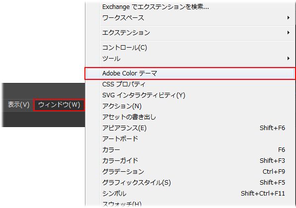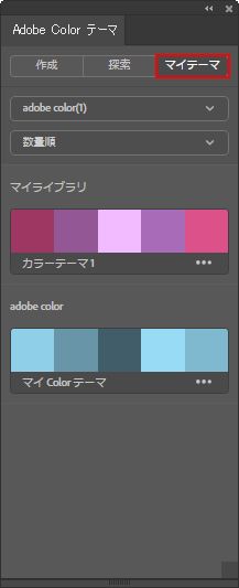 ウインドウ/Adobe Color テーマ を選択して、Adobe Color テーマパネルを表示します。