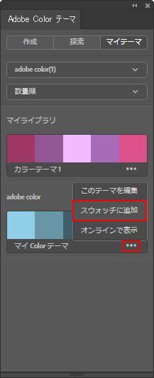 使用するカラーテーマの「…」をクリックして「スウォッチに追加」をクリックします。
