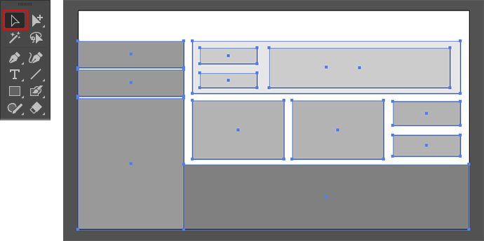 「選択ツール」を選択して、再配色したいオブジェクトを複数選択します。