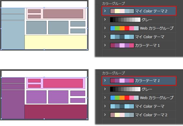 現在のカラーに当てはまる色を配置して、オブジェクトの配色を調整します。