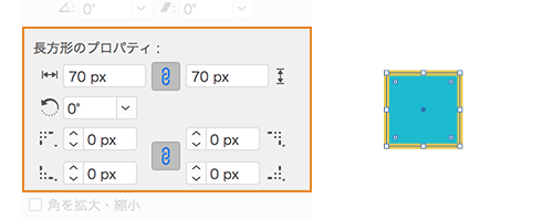 - 幅 / 高さ:長方形の高さまたは幅を指定します。角は維持され、半径は変更されません。