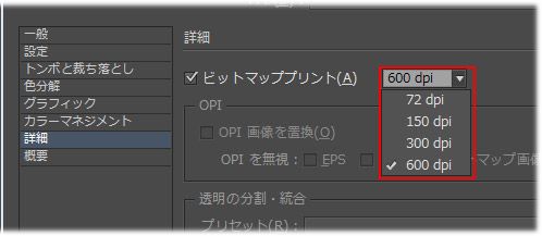 ビットマッププリントの解像度を指定します。