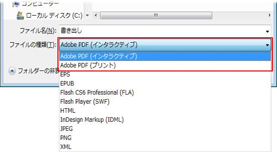 PDF ファイルを保存する際、必ず「Adobe PDF(インタラクティブ)」または「Adobe PDF(プリント)」のいずれかを選択する必要があります。