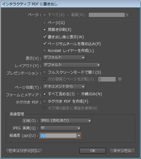 ボタンやハイパーリンクなどのインタラクティブ要素を維持して PDF を書き出す必要がある場合は、こちらのオプションを選択してください。インタラクティブ PDF に書き出しダイアログボックスが表示されます。