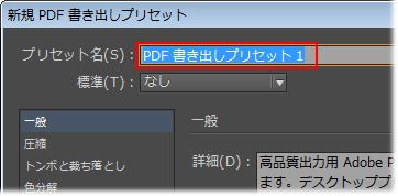 新規 PDF 書き出しプリセットが表示されたら、プリセット名を入力します。