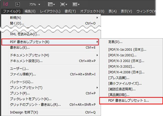 ファイル/PDF 書き出しプリセット/定義を選択します。