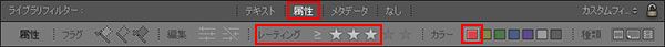 フラグやレーティング(星の数)、カラーラベルを指定して抽出します。それぞれを組み合わせて使用することも可能です。