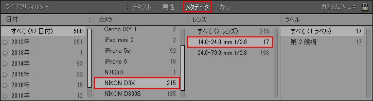 ライブラリフィルターでは、テキスト、属性、メタデータの 3 種類のモードで指定した条件で写真をすばやく抽出します。モードを組み合わせて抽出することもできるので、より細かで多様な条件で写真を抽出することが可能です。