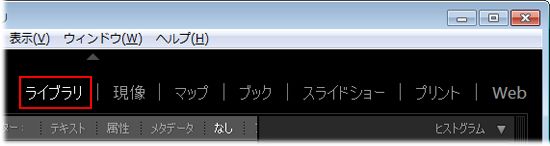 Lightroom Classic CC を起動し、上部のメニューから「ライブラリ」をクリックして選択します。