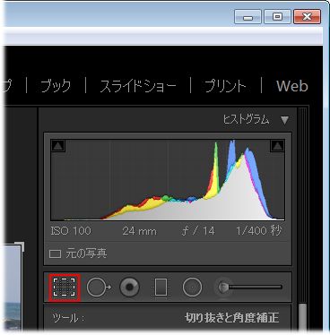 画面右上にある「切り抜き」ツールをクリックして選択します。