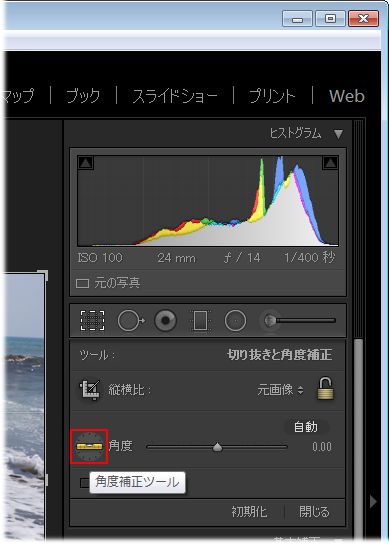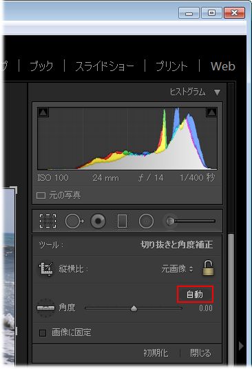 自動的に角度が補正されます。必要に応じて角度スライダーで微調整します。