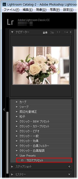 指定したフォルダーのプリセットフォルダーに新しいプリセットが追加されます。