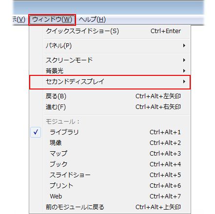 ウィンドウ/セカンドディスプレイ にカーソルを合わせます。