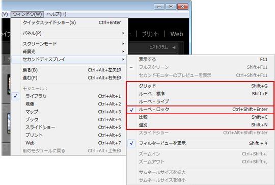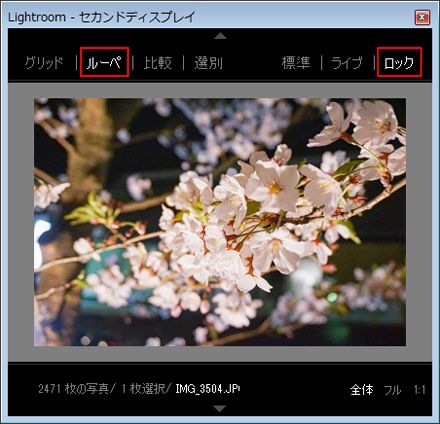 「ルーペ - ロック」モードを選択すると、メインディスプレイで現像しながら、セカンドディスプレイで他の画像を確認することができます。