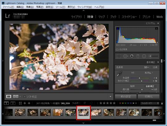 現像モジュールで写真を現像し、保存しておきたい現像内容になったら一度作業を止めます。