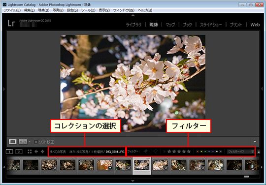 選択したコレクションがフィルムストリップに表示されます。