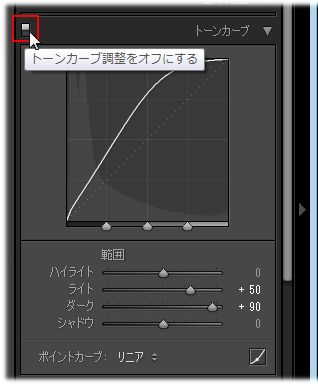 トーンカーブが一時的に無効になり、グレーアウト表示になりました。
