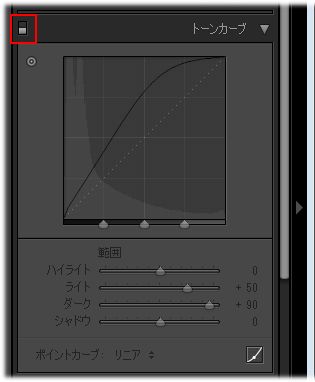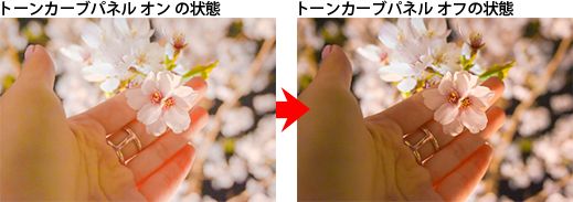 ※ここでは、トーンカーブパネルをオフにして、トーンカーブ適用前と後を比較します。
