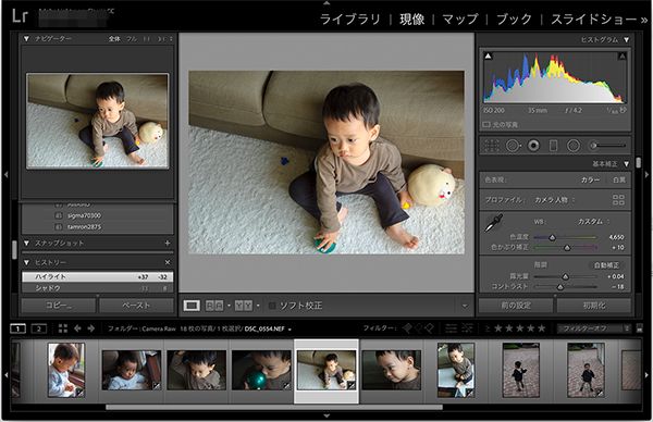 写真の現像設定も無効になり、トーンカーブ適用前の状態を確認することができます。