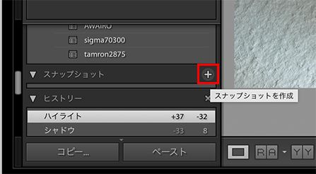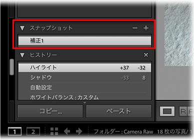 現像作業の途中で、気になった現像内容はスナップショットとして保存しておくことができます。いろいろな現像パターンを試して比較する際などに便利です。