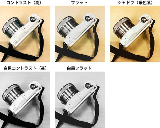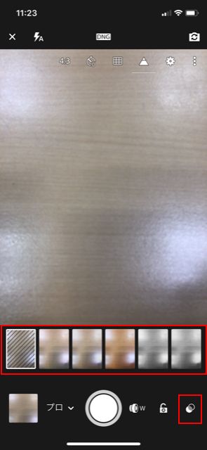 初期設定ではフィルターは適用されていませんが、5 種類のフィルターが用意されています。フィルターを適用した状態で撮影するので、仕上がりをイメージしやすくなります。