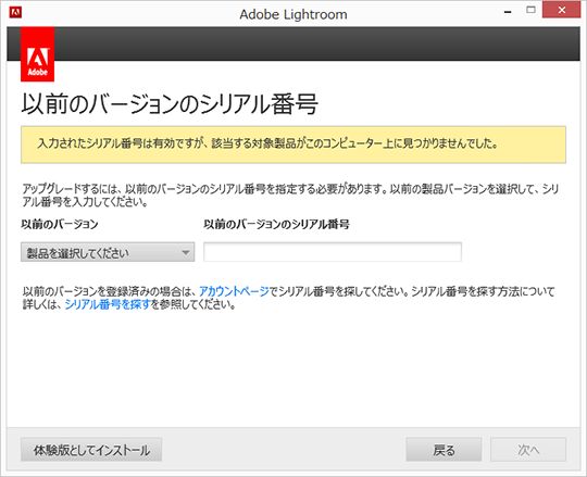 体験版 Photoshop Lightroom CC を Photoshop Lightroom 6 としてライセンス認証する