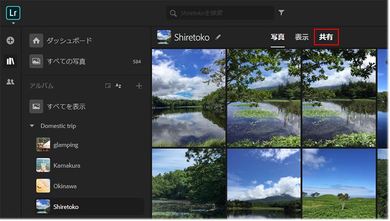 Lightroom CC と同期している写真は、インターネットに接続されていれば Lightroom CC Web 上の操作で写真を公開することができます。