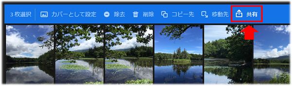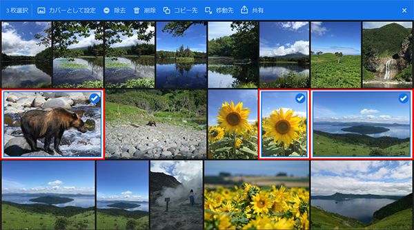 公開する写真にマウスカーソルを乗せ、右上に表示されるチェックマークをクリックして選択します。