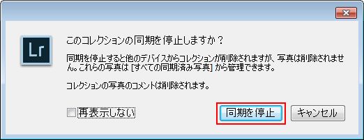 「これらの写真の同期を停止しますか?」というメッセージが表示されたら、「同期を停止」ボタンをクリックします。