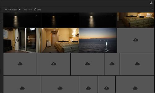 Lightroom Web ギャラリーの写真が雲のアイコンで表示されている場合、同期処理が進行中であることを示しています。同期する枚数やネットワーク環境によっては、同期が完了するまで時間がかかります。時間を置いてから改めて確認してください。