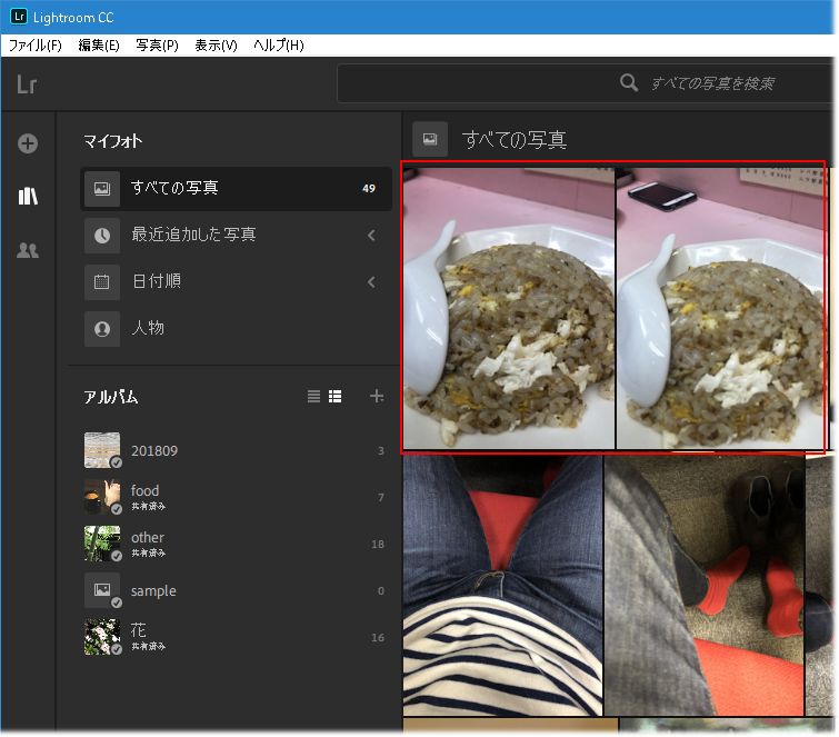 6. Lightroom CC を起動すると、モバイルから読み込んだ写真が同期されていることが確認できます。