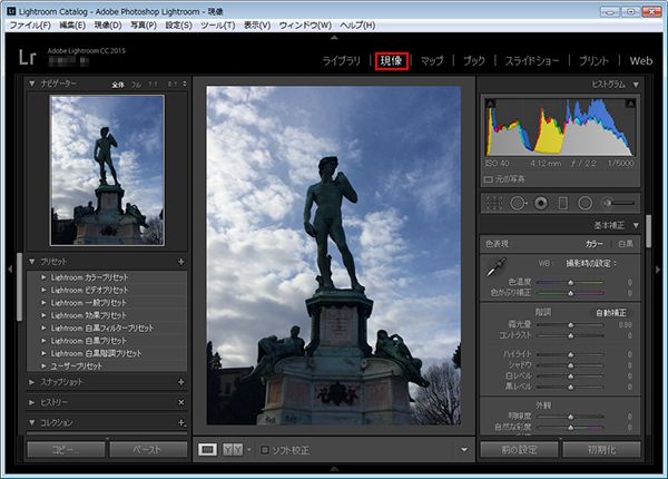 1. Lightroom を起動し、逆光の写真を現像モジュールで開きます。