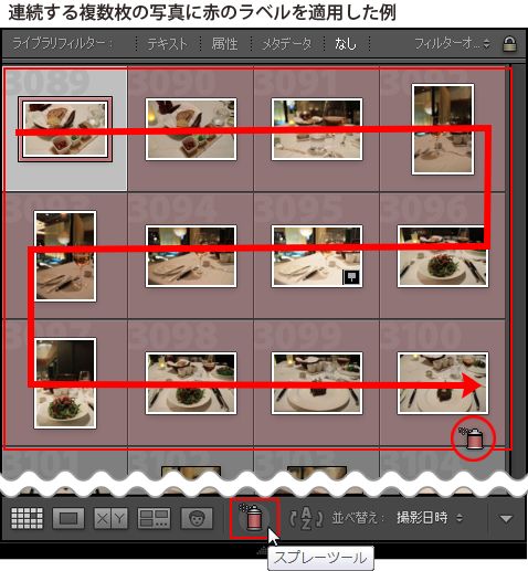 スプレーツールで複数の写真に一度に 写真の情報を設定