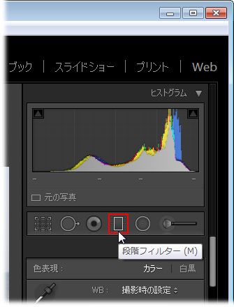 2. ヒストグラムの下部にあるツールストリップパネルの中から「段階フィルター」を選択します。
