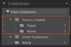 Lightroom for mobile で以前同期された Lightroom 写真とコレクション Lightroom for mobile で以前同期された Lightroom 写真とコレクション Lightroom デスクトップのカタログパネル: Lightroom for mobile (左)の「Lightroom 写真」表示にあるすべての同期写真がカタログパネルの「すべての同期した写真」に追加されます。 Lightroom デスクトップのカタログパネル: Lightroom for mobile (左)の「Lightroom 写真」表示にあるすべての同期写真がカタログパネルの「すべての同期した写真」に追加されます。 Lightroom デスクトップのコレクションパネル: すべての同期コレクションがコレクションパネルの「From Lightroom mobile」コレクションセットにダウンロードされます。 Lightroom デスクトップのコレクションパネル: すべての同期コレクションがコレクションパネルの「From Lightroom mobile」コレクションセットにダウンロードされます。 - すべての同期コレクションがコレクションパネルの「FromLightroom mobile 」コレクションセットにダウンロードされます。