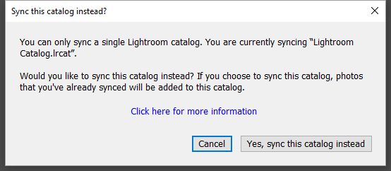 Lightroom CC 2015.8/Lightroom 6.8 で、別のデスクトップカタログを同期するワークフローが更新されました。失われたり間違って削除された同期済みカタログを復元するプロビジョンが追加されました。