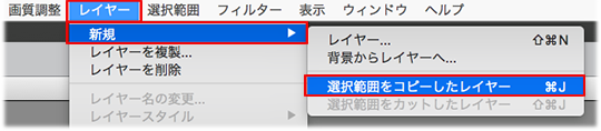 b. 選択範囲を作成し、レイヤー/新規/選択範囲をコピー(またはカット)したレイヤー を選択します。