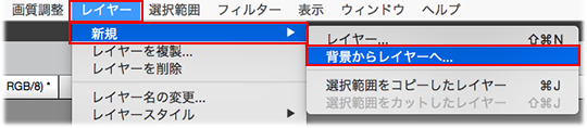 c. レイヤー/新規/背景からレイヤーへ を選択し、背景レイヤーを通常のレイヤーに変換するか、その逆の変換を行います。