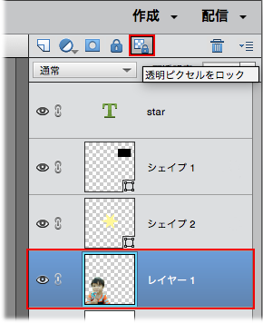 テキストレイヤーとシェイプレイヤーは、初期設定で透明部分がロックされています。