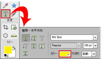 - テキストツールやシェイプツールなどでカラーを選択する際、オプションパネルに表示されたカラーをダブルクリックします。