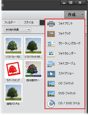 Photoshop Elements では、写真を使用してスライドショーやフォトブック、グリーティングカードなどの作品を簡単に作成することができます。