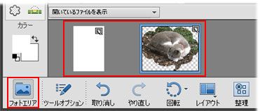 ウィンドウ左下の「フォトエリア」をクリックします。フォトエリアにはじめに作成したファイルと開いた写真が表示されます。