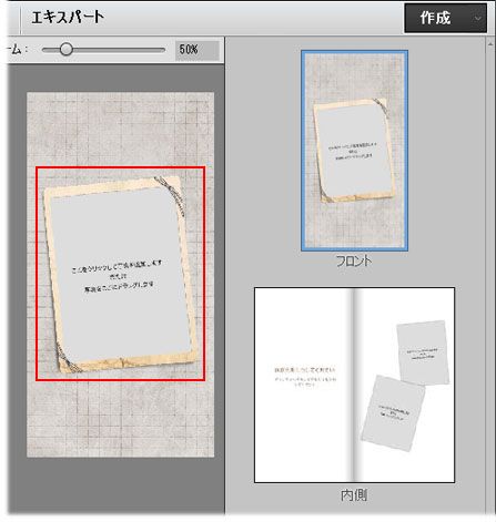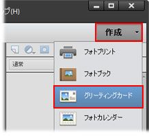 ウィンドウ右上の「作成」ボタンをクリックし、「グリーティングカード」を選択します。