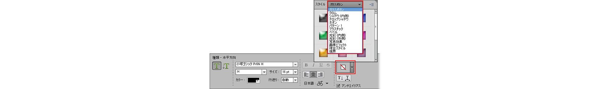 ※ スタイルをクリックしていくと重ねて適用されていくので、編集 メニューから「スタイルを適用の取り消し」をクリックするか、スタイルピッカーのパネルメニューから「スタイルを削除」を選択することで、作業を取り消すことができます。