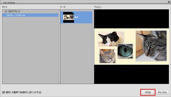 CD ジャケットウィンドウが表示されたら「OK」をクリックします。