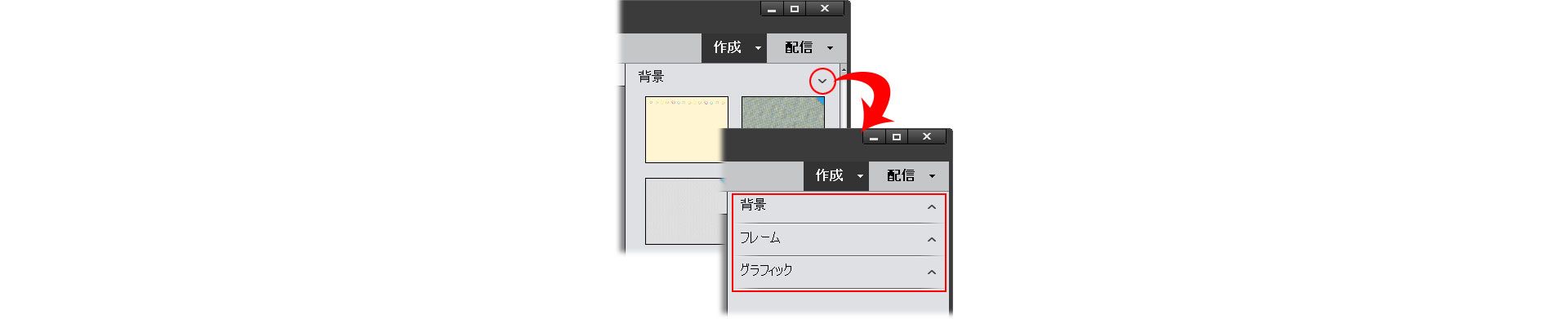 ※ グラフィックは、「背景」と「フレーム」と「グラフィック」の 3 つに分類されています。