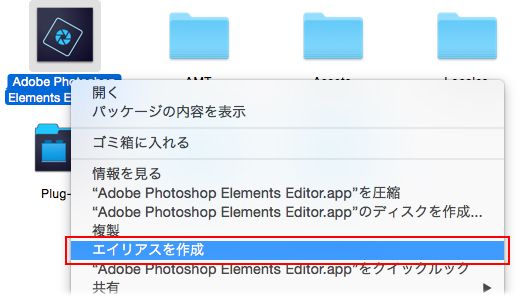 Macintosh HD/Applications/Adobe Photoshop Elements 14/Support Files - Photoshop Elements 15 の場合