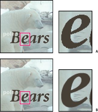 A. アンチエイリアスをオフ B. アンチエイリアスをオン