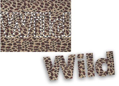 文字マスクツール(Alt/Option キーを押しながら文字ツールをクリックして、現在のツールを変更)を使用して、文字の形状をした選択範囲を作成します。これによって、テキストを使用して様々な効果を作成したり、テキストの形状に切り抜いたりすることができるようになります。