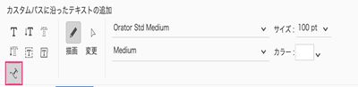 カスタムパスに沿ったテキストの追加ツール を選択します。現在のテキストツールを素早く変更するには、Option キーを押しながら現在のツールをクリックします。